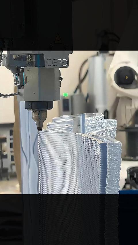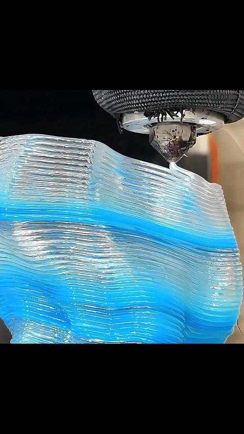 LFAM技术×参数化设计×空间艺术,25小时连续打印,2.5米高透明波浪装饰墙震撼成型|LFAM大幅面3D打印 #LFAM #大幅面3D打印 #透明PETG #数字制造 #智能智造前沿科技 #参数化设计 #空间美学重塑 #科技与美学